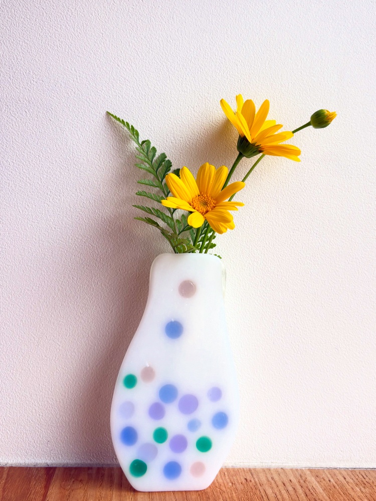 | フリーコース 2時間3500円 延長30分500円 | お好きな物を自由に作っていただくコースです。 ガラスによってお値段が違います。材料費別です。 |