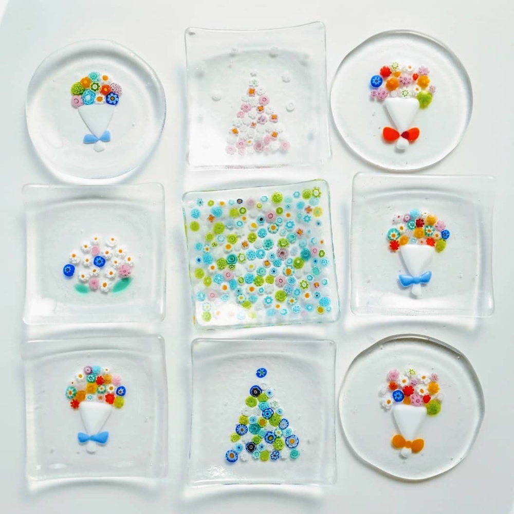 | 認定講師コース 対面またはオンライン 2時間3500円延長30分500円 | ガラスフュージング の講師を目指す講座です。 認定講師登録料、道具類(ガラスの色によってお値段が変わります)合わせて平均7〜8万円かかります。詳しくはお問い合わせください。 |
